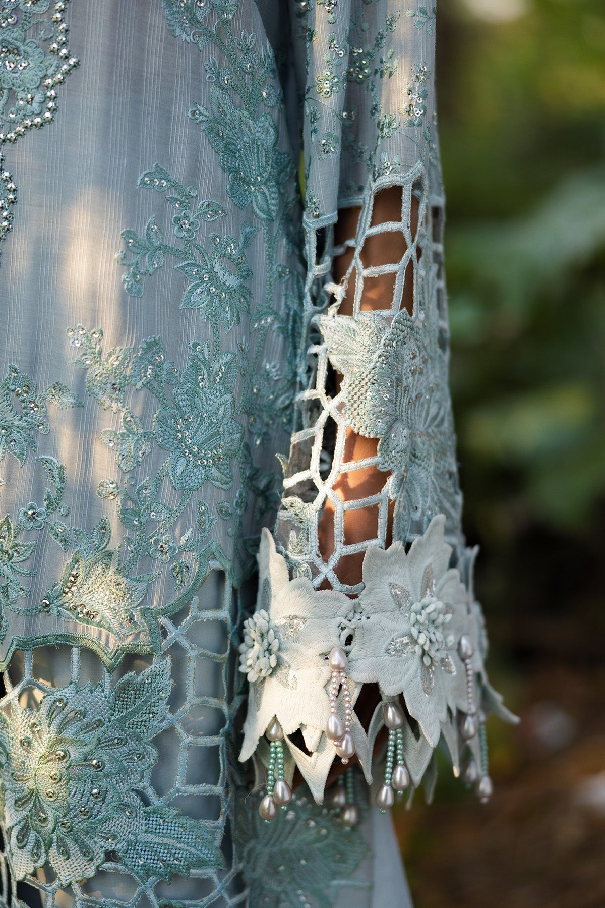• Embroidered Shirt Border On Organza Ready In One Piece!