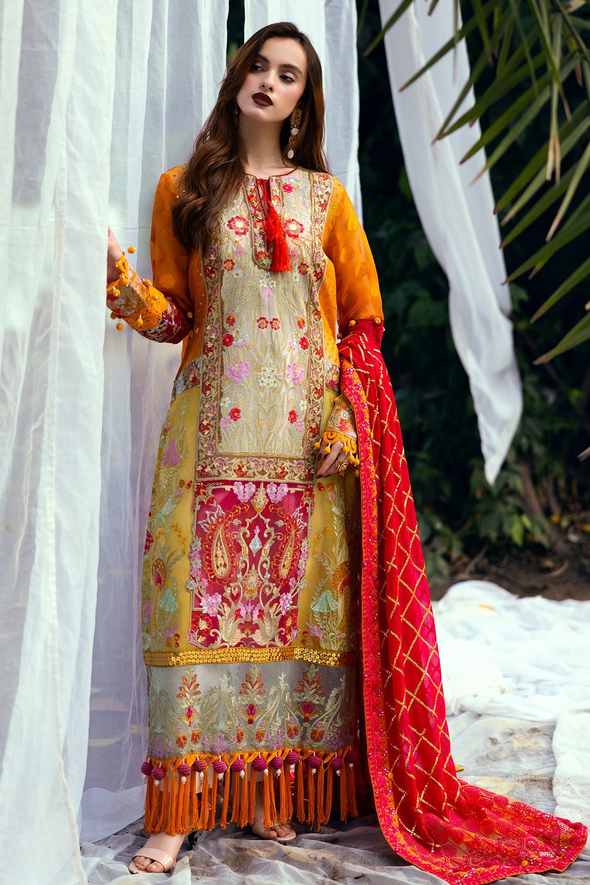 • Embroidered Stitched Dupatta On Chiffon!