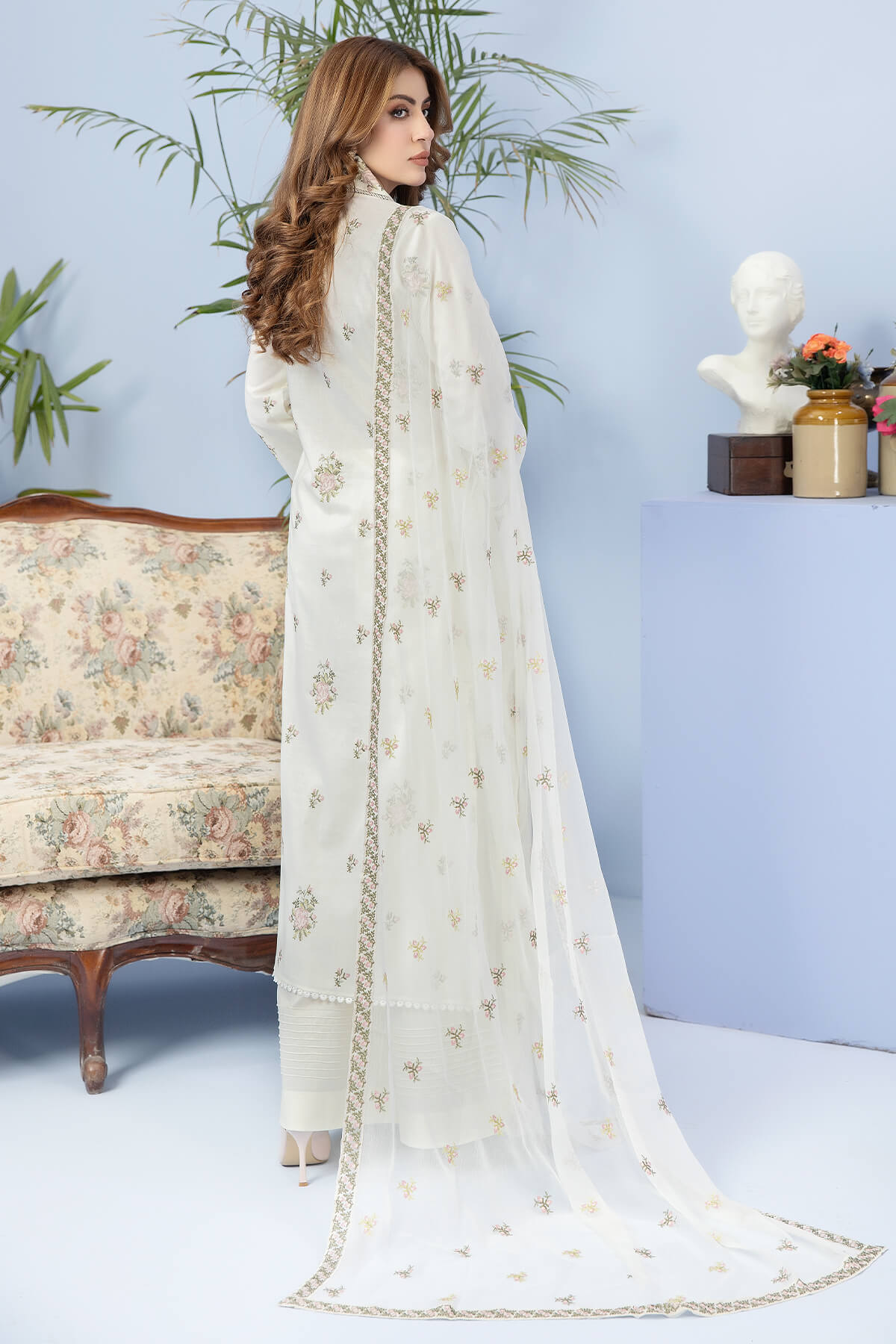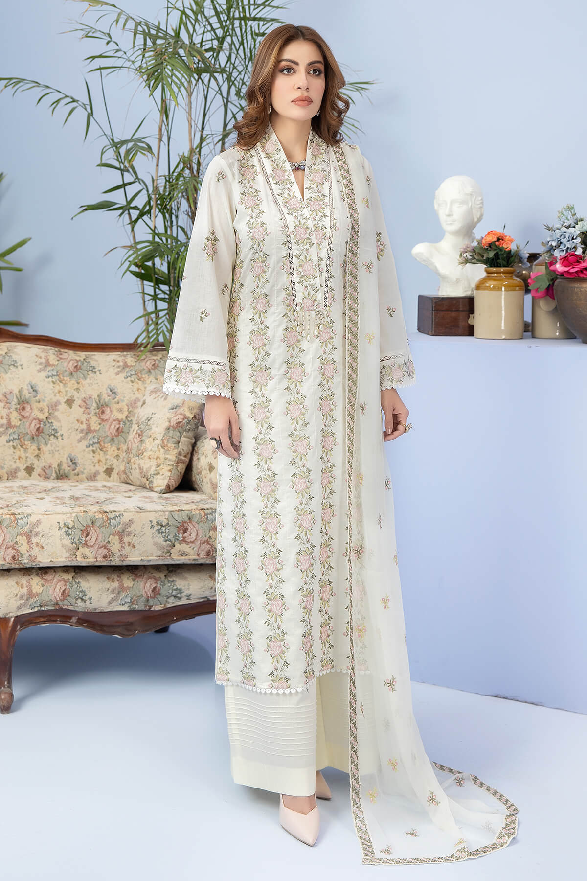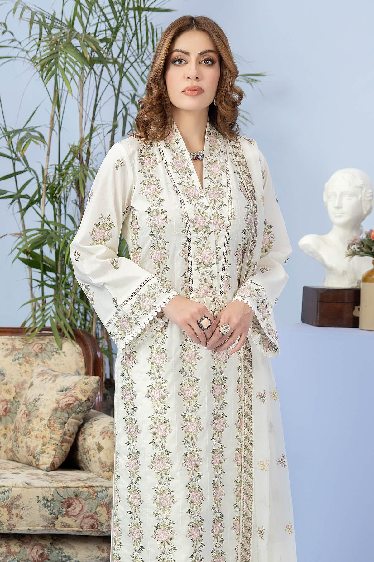 Embroidered lawn shirt.