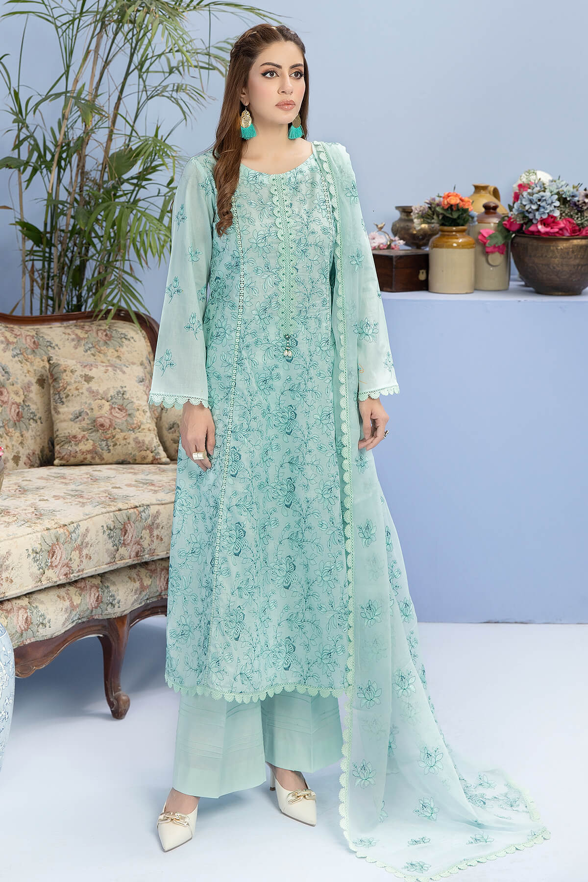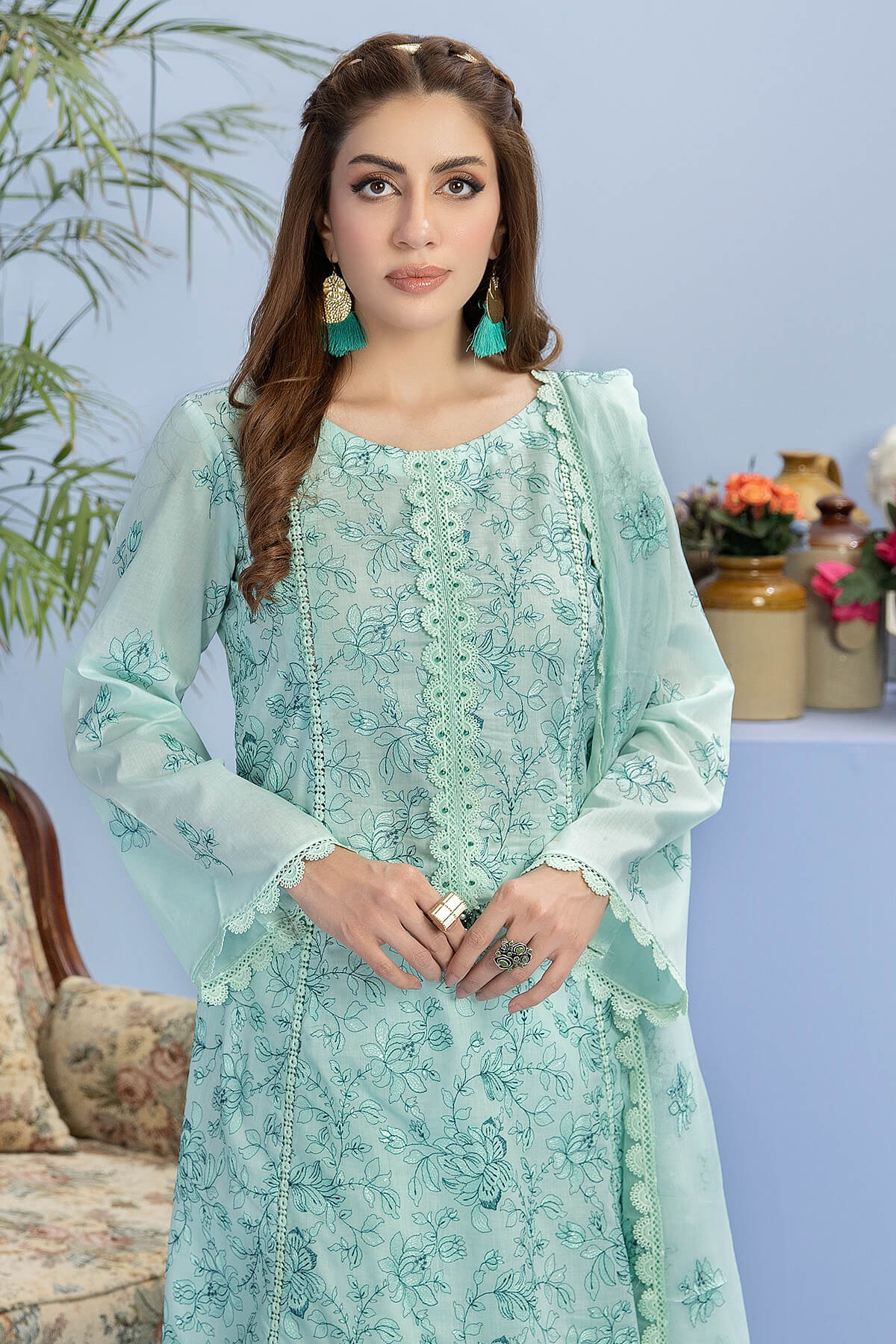 Embroidered lawn shirt.