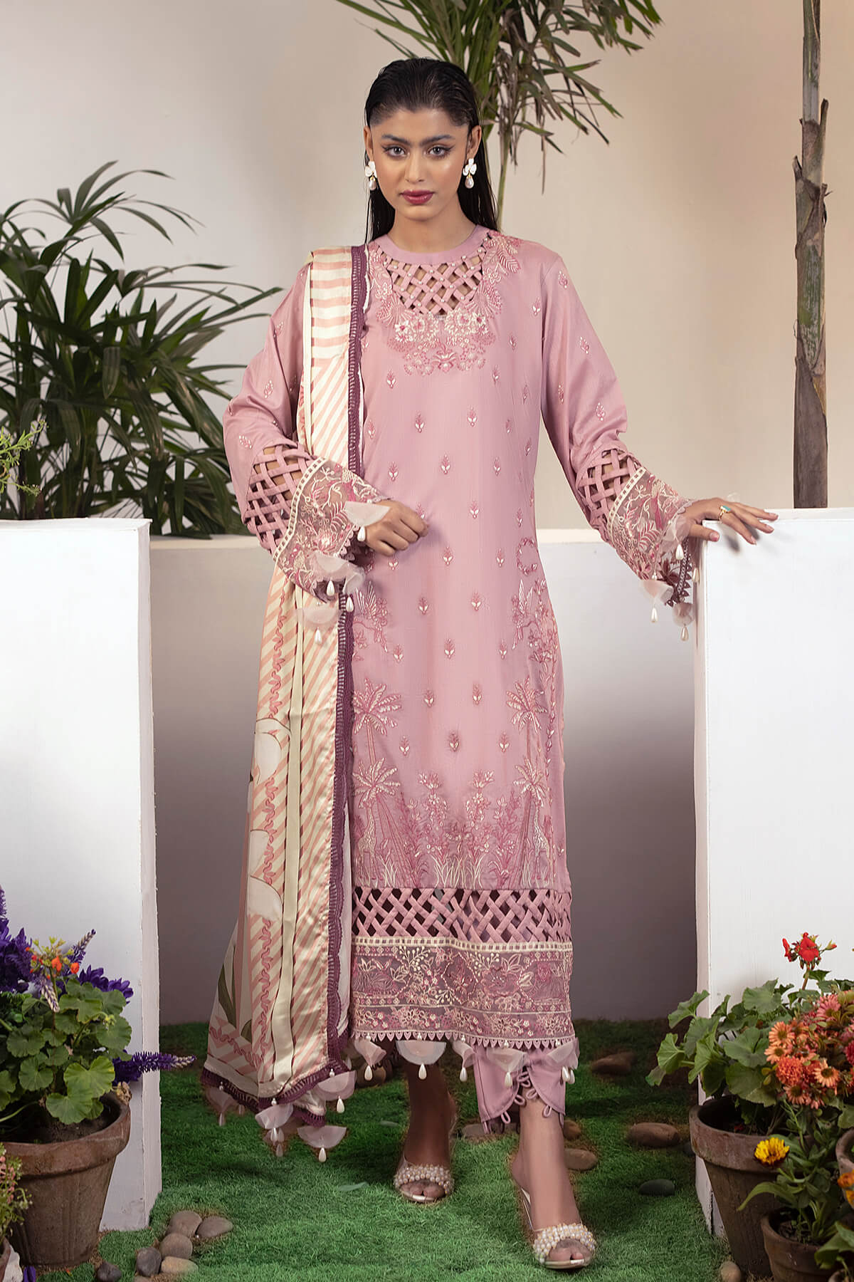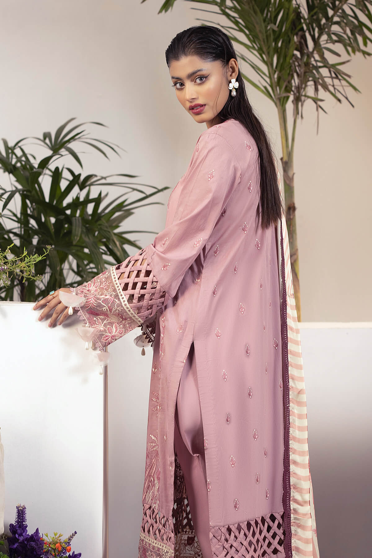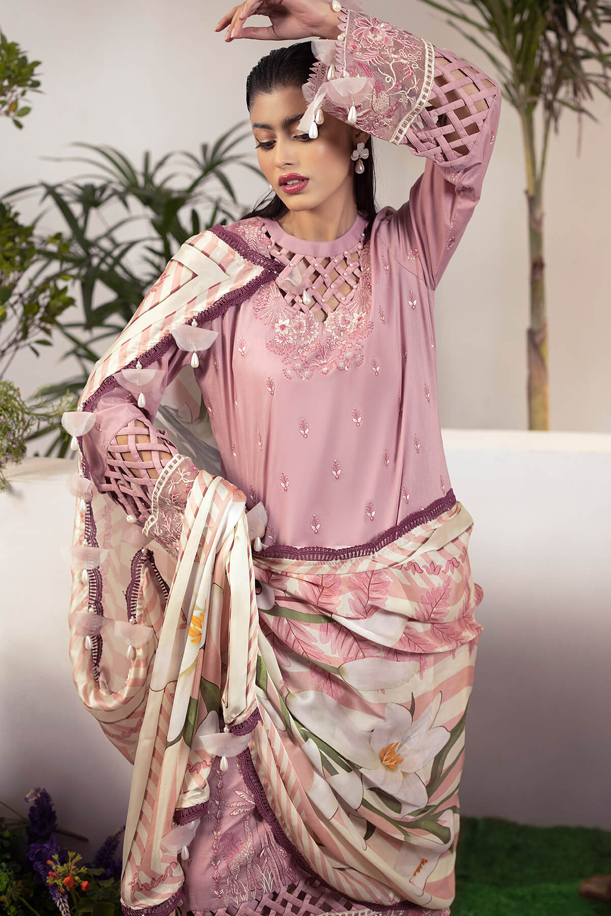Embroidered sleeves on lawn