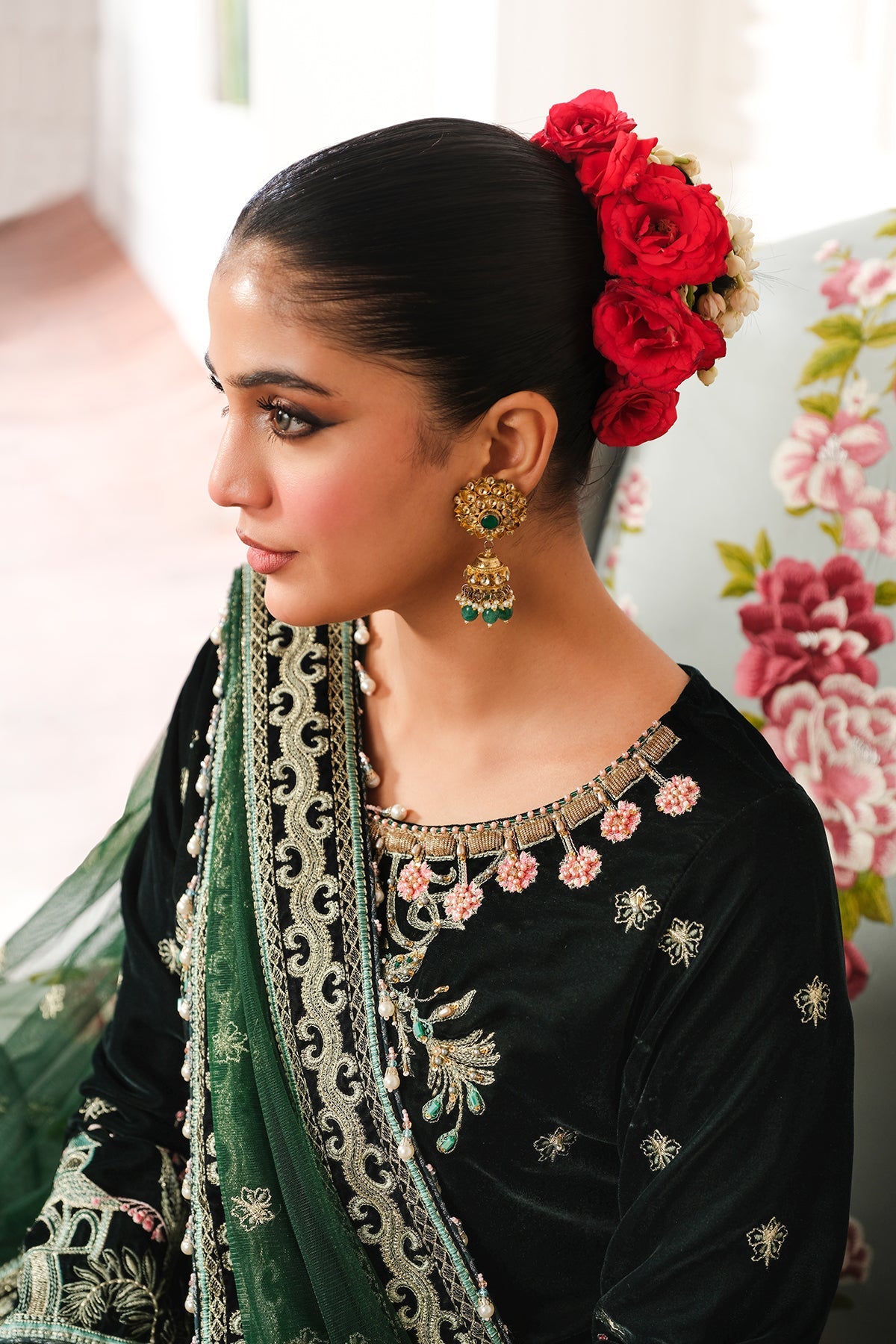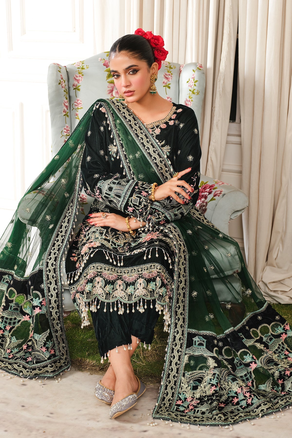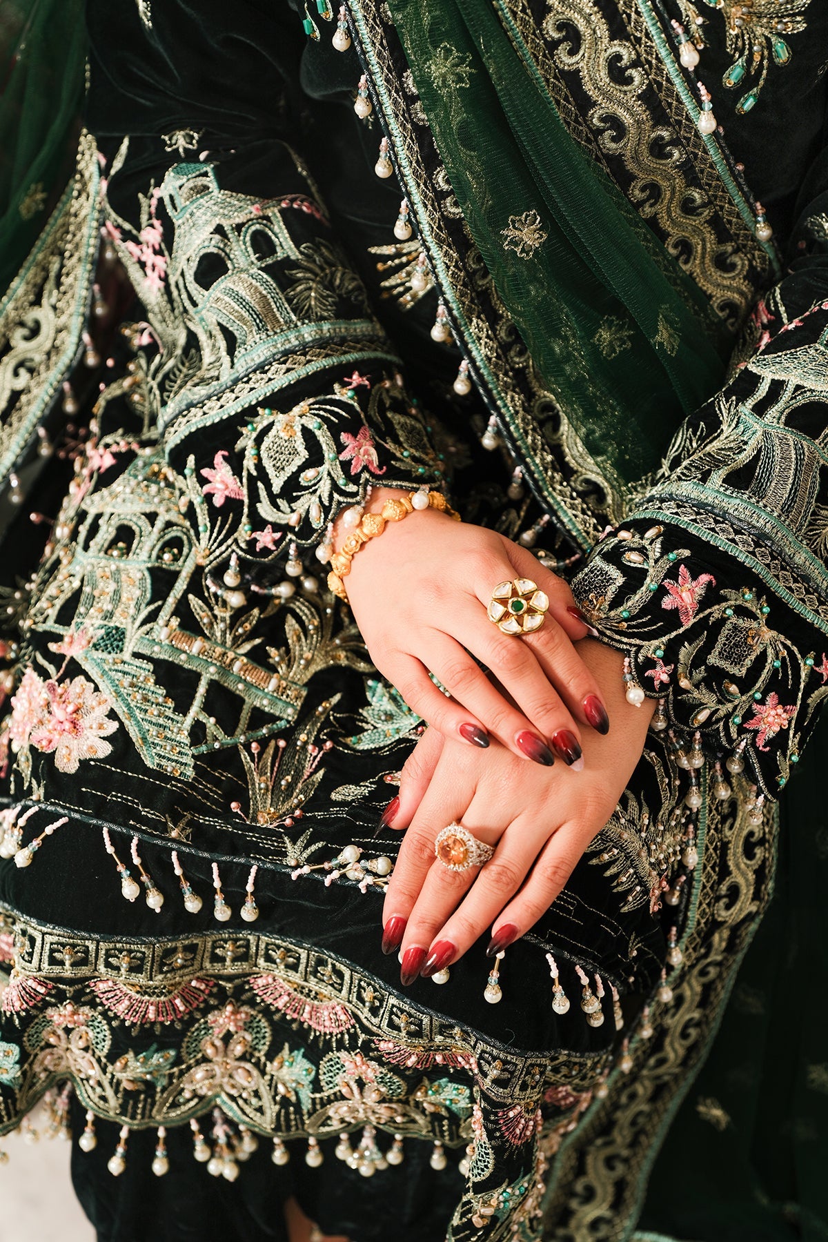 • Embroidered Velvet Bazu Border + Embelishment