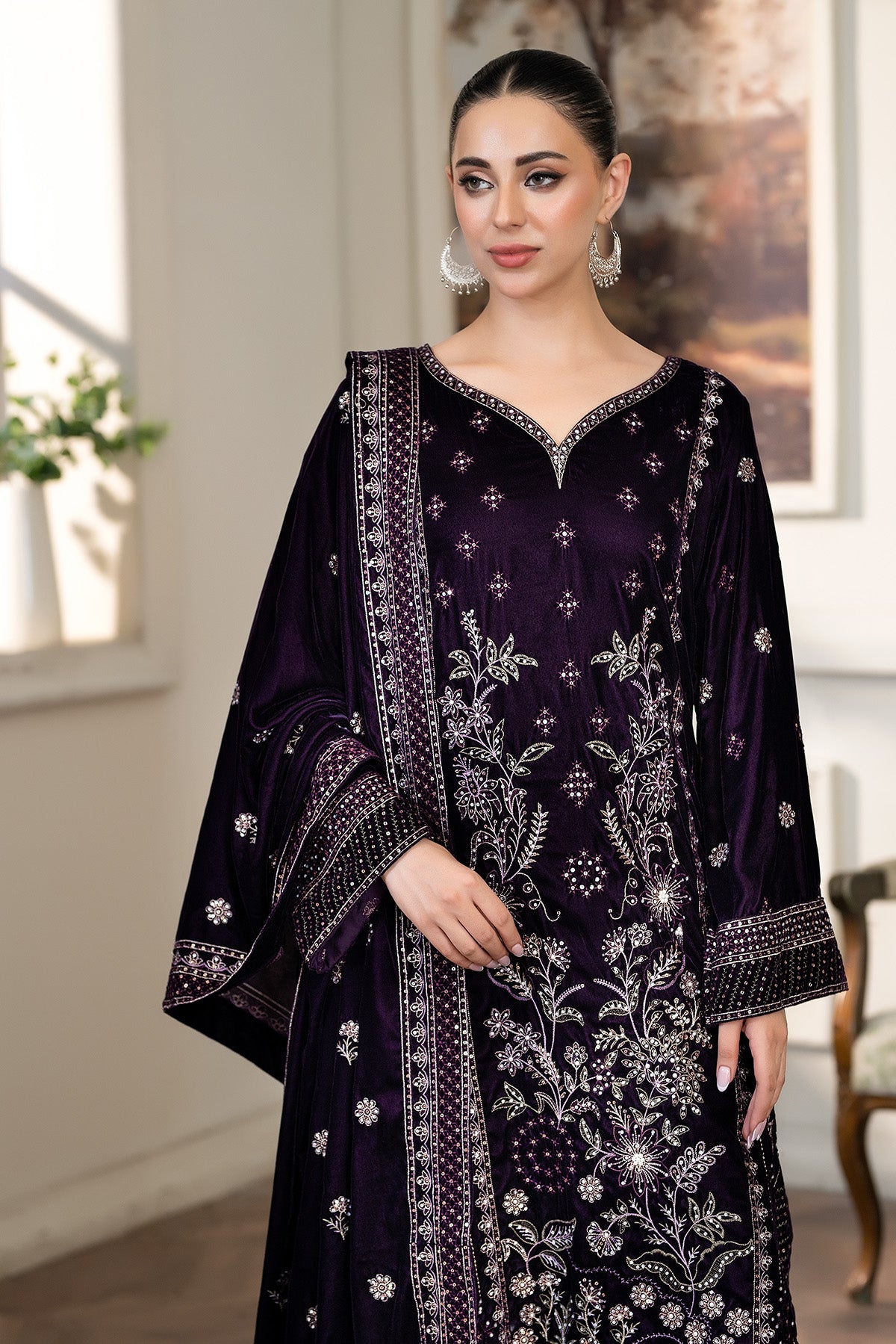 Embroidered Pure Velvet Front