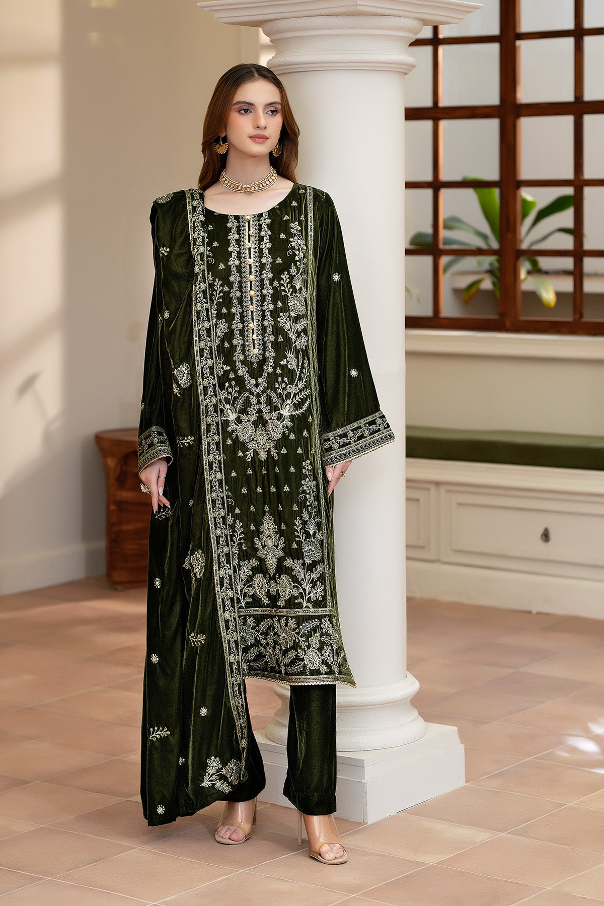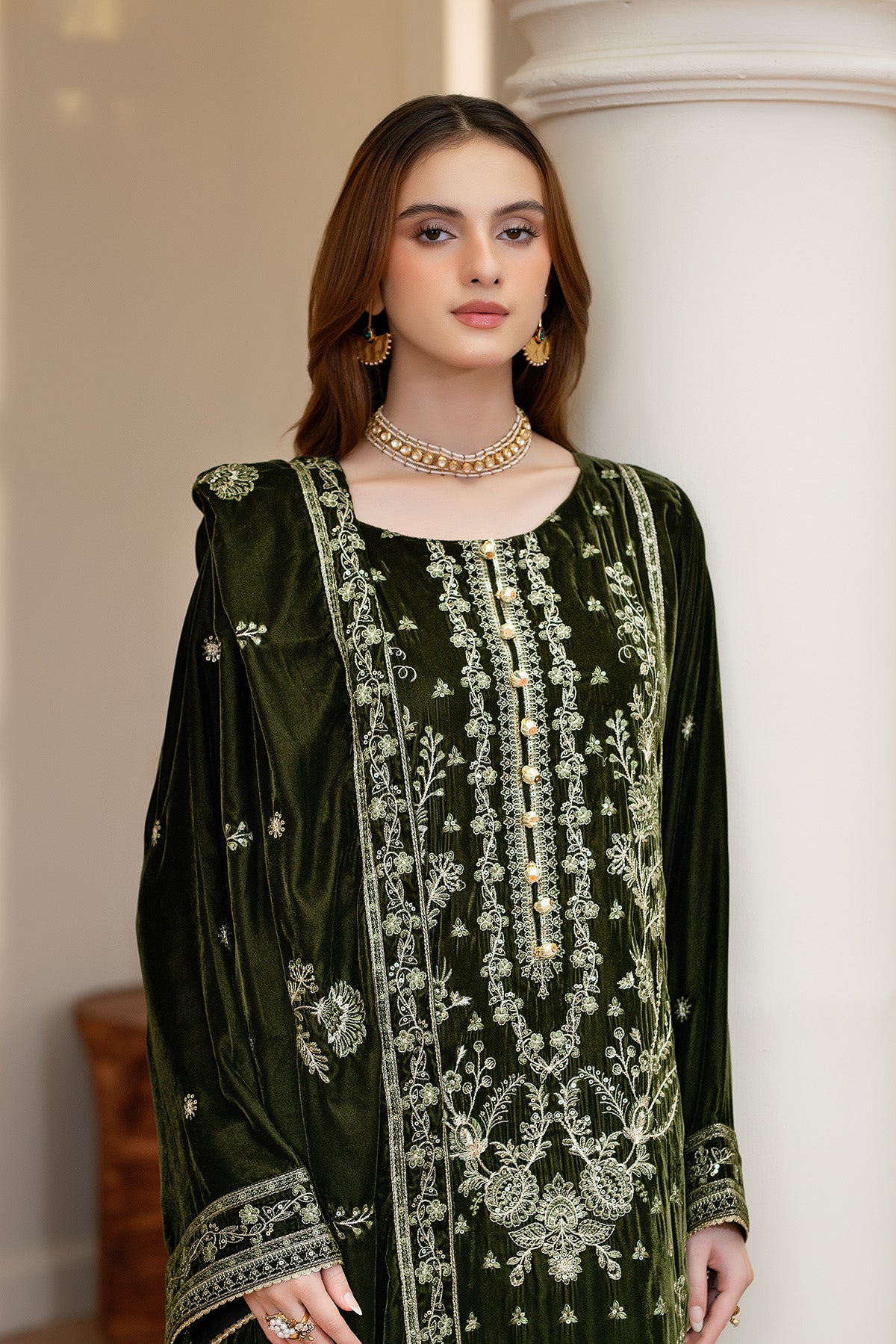 Embroidered velvet Dupatta (Ready To Wear)