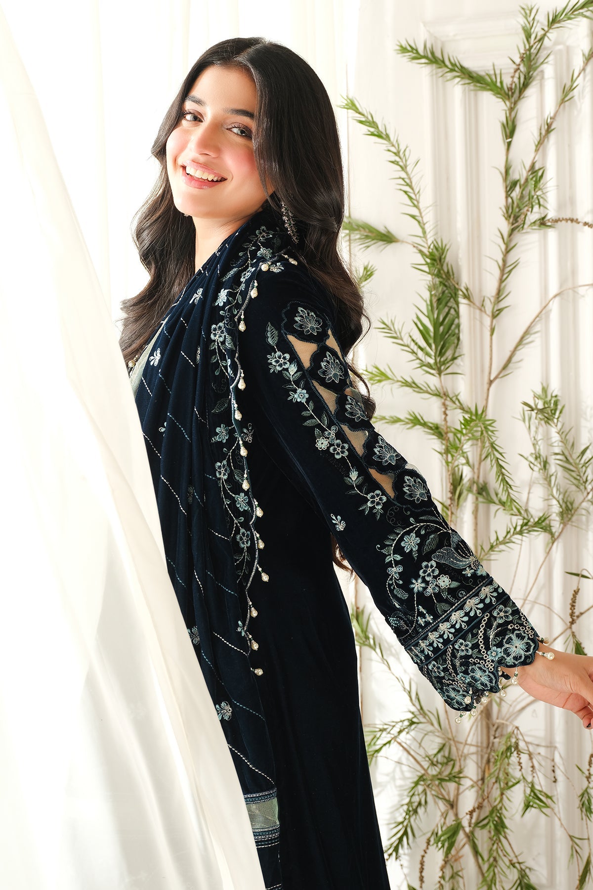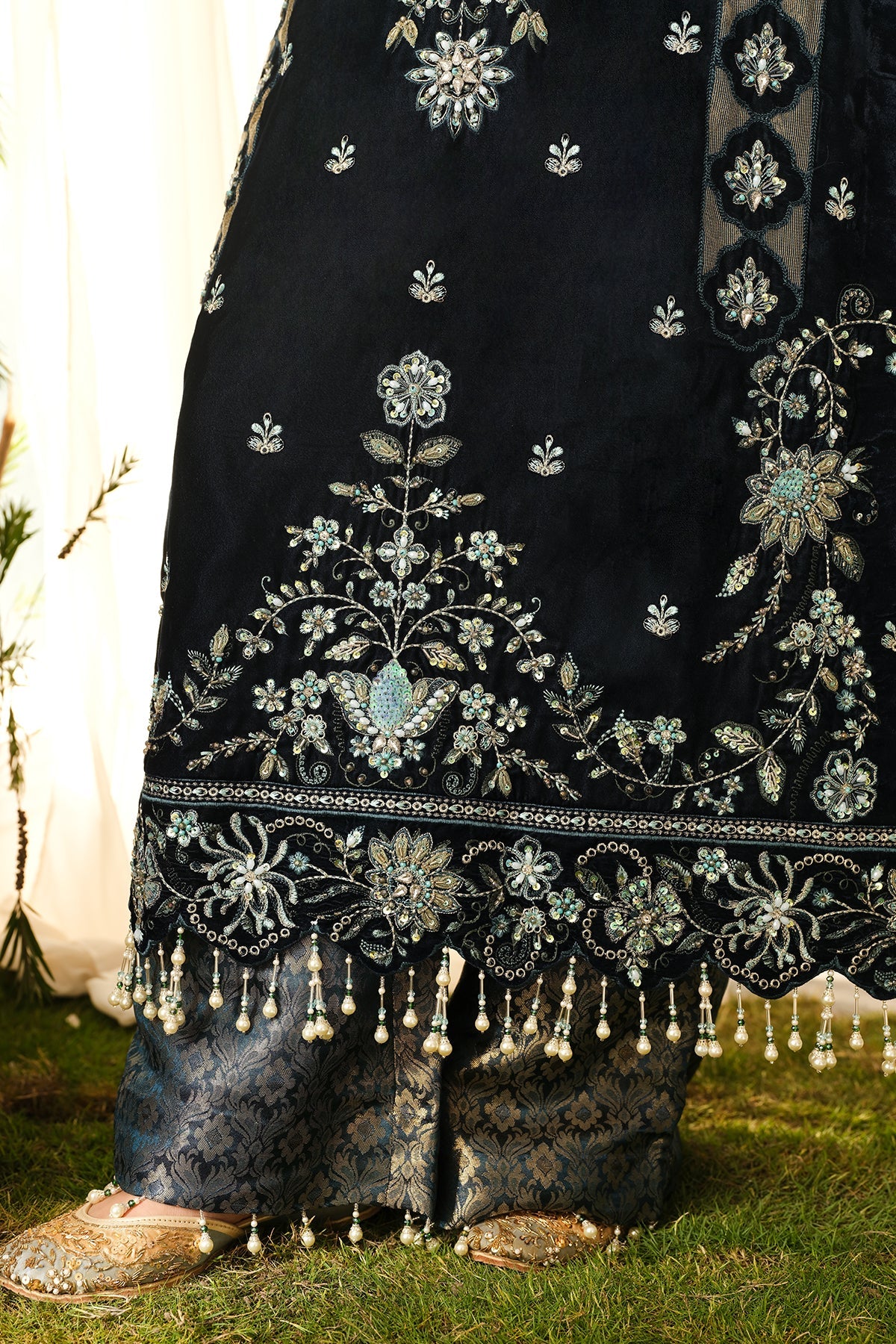 • Embroidered Velvet + Zari Bazu + Lazer Cut