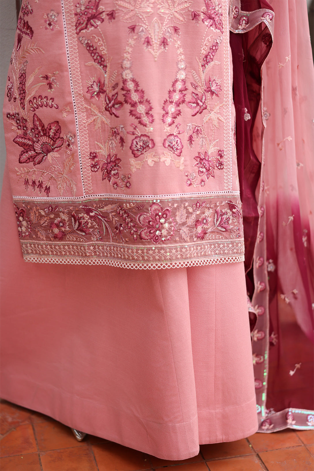 • EMBROIDERED SLEEVES BORDER ON ORGANZA
